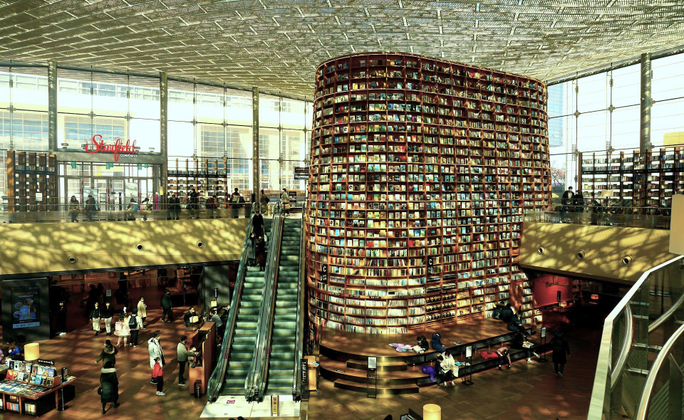位於江南區的COEX MALL裡,是首爾全新的文化空間,自然也吸引了眾多人潮,可說是韓國目前的新興熱門景點之一。館內採開放式的建築風格,並有3個高兩層樓的書櫃,木頭質感與良好的採光,讓此處的空間顯得寬闊、舒適。這兒除了擁有5萬多本的豐富藏書外,還有最新的電子書系統,為了便於訪客閱讀,內部也設置了沙發、書桌等各式桌椅,非常適合想感受文藝氣息的您哦!