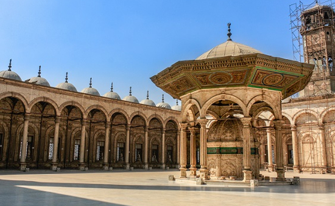 穆罕默得阿里清真寺:建在薩拉丁城堡的至高處,直上雲霄的宣禮塔讓它顯得更加雄偉。外部是雪花石建材,內部華麗的祈禱室、遼闊的庭院,乃埃及現代化的最佳表徵。