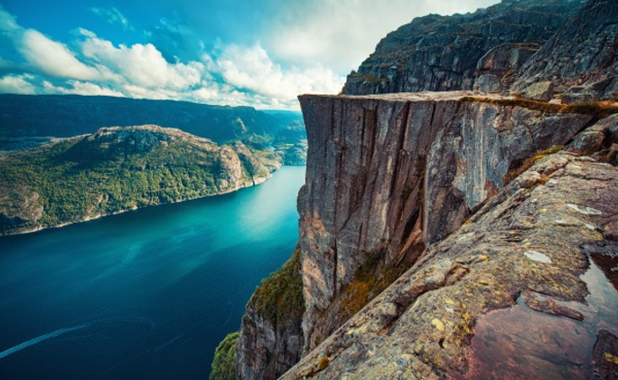峽灣全長約 42 公里,挪威語意為「光之峽灣」,身處其中,兩岸亮麗多彩的花崗岩尤其醒目。最聞名於世的,莫過於挪威三大奇岩中有兩處位在此峽灣,其中以聖壇岩最容易到達、景致最為著名。快來感受大自然的鬼斧神工吧!