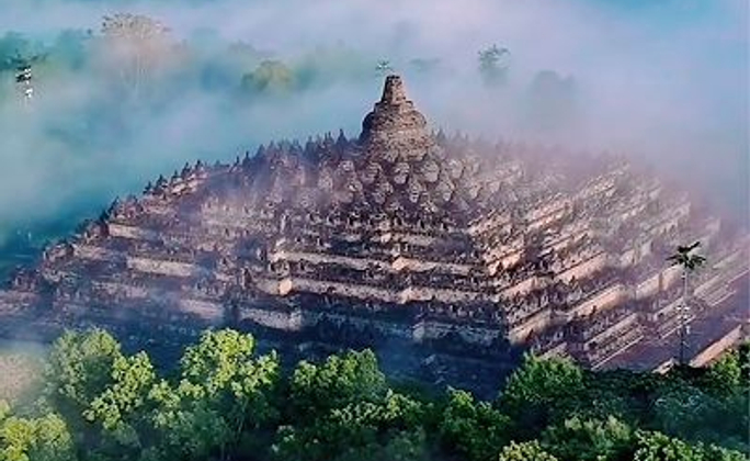 婆羅浮屠,是世界上最大的佛教寺廟之一。佛寺於西元8至9世紀由由夏連特拉王朝所建,以獨特的階梯金字塔結構,象徵著佛教宇宙觀,從底層的欲界到頂層的無色界,代表著修行者從凡俗世界到達涅槃的過程。現在婆羅浮屠被譽為世界七大奇蹟之一,不僅是宗教信仰的虔誠展現,也提供了旅客窺見過去的歷史和文化,讓人感受到人類文明的偉大成就。