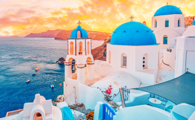 Alkistis Hotel 或 Giannoulaki Hotel 或Olia Hotel或同級 第 7 天 米克諾斯島→聖托里尼島│藝術小鎮伊亞→藍頂教堂→世界最美日落伊亞 【藝術小鎮伊亞Oia】聖托里尼島北邊岬角的頂端有個名叫伊亞的小鎮,它是聖托里尼島的第二大城鎮,也是愛琴海上出鏡最多的地方。多數遊客來這裡的主要目的就是欣賞這裡的日落。據說這裡是全世界最美麗的日落,能看到「夕陽落入愛琴海」的獨特景觀。伊亞小鎮的日落景色被許多藝術家、攝影家作為靈感的來源。每年有好幾百萬的遊客到這個基克拉澤斯群島上的半彎月形火山島來度蜜月,享受愛琴海令人陶醉的氣氛. 同時也選擇居住在這島上,感受拉小鎮的美,漫步享受藍白色的浪漫風情,許多情人都在這裡留下愛的足跡。 【藍頂教堂Blue Domed Church】藍白相映的「藍色圓頂教堂」,依山傍水,夢幻美麗的景象,不單單只是聖托里尼的人氣攝影建築,更是希臘具代表性的風景,網路上琳瑯滿目的各式角度照片,是旅人和攝影師以及建築師喜愛到訪的景點。旅人說:沒有拍到藍頂教堂的美照就不算來過聖托里尼。 【世界最美的夕陽伊亞Oia】伊亞號稱擁有全世界最美的夕陽,這裡的美景常被呈現在許多知名的雜誌上,這些美景照片都是在聖托里尼島拍攝的,聖托里尼的夕陽魅力,讓世界各國的人都慕名而來。