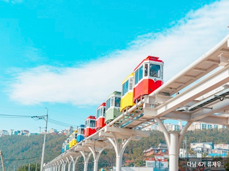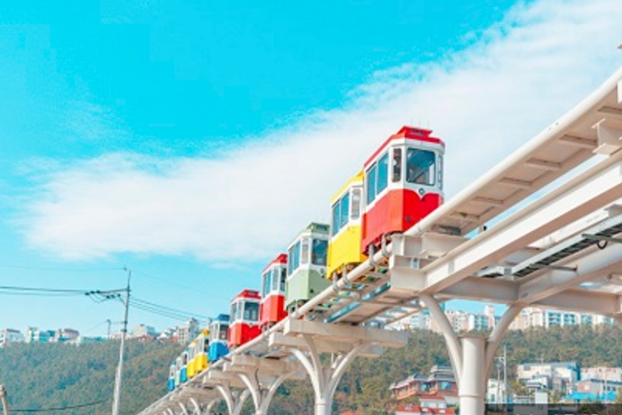 【海雲台天空艙膠囊列車】過去曾是廢棄路線的釜山東海南部線,從廢棄的尾浦站與青沙浦、松亭串連起來,成為海雲台藍線觀光列車,以更輕鬆的方式前往海雲台周邊的青沙浦、松亭等景點。「天空膠囊列車」在7~10公尺寬的空中軌道運行,有紅.黃.綠.藍四種顏色的單節車廂名為天空艙,車廂最多可乘載4名成人,沿著海岸線行走,搭乘時間約30分鐘,在小巧繽紛的車廂中感受釜山的山海之美。