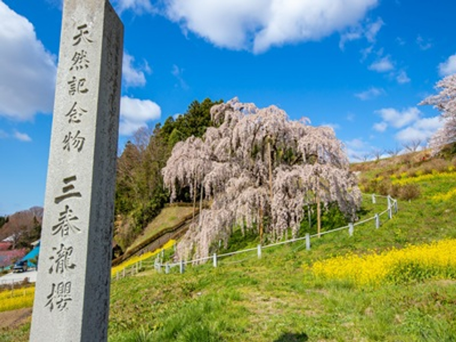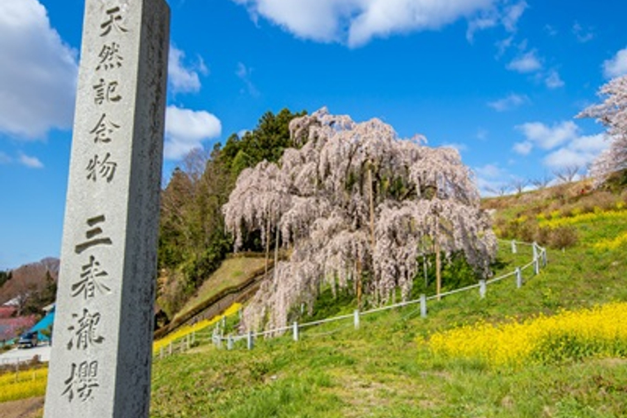 【三春瀧櫻】推估樹齡1000年以上的紅枝垂櫻樹,獲指定為國家天然紀念物,同時還是日本三大櫻樹之一、日本百大賞櫻地點之一,巨大的櫻花樹高13.5公尺,根部周長11.3公尺,枝葉伸展東西寬25公尺,南北長20公尺,就近欣賞震撼力十足。瀧櫻的意思是指嚚Ⅹr布櫻花嚚ㄐA此櫻花在盛開時精緻的粉紅花瓣會呈現絢爛的流瀑狀,而形成令人驚豔的景色,與在日本其它地區欣賞到的櫻花完全不同,值得您親自來訪欣賞。