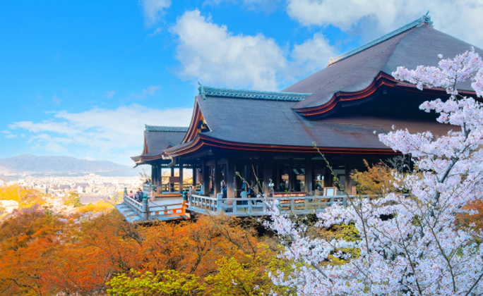 在清水舞台下方,茂密的枝葉中仰望站在斷崖上的清水舞台,都教人嘆為觀止;另外寺前的產寧步道,兩排長達200公尺的京味小舖,更讓您流連忘返。