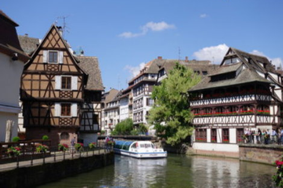 1.史特拉斯堡:伊爾河畔矗立著被紅花綴滿的木質結構建築木造屋和露天餐廳,彷若走進中世紀的童話世界。