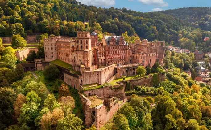 因拍攝電影《學生王子》而聞名的大學城,兼具歷史與現代融合的城市,有中世紀的美麗城堡,還有全德國最古老的教育機構海德堡大學,緊鄰著美麗的內卡河畔,19世紀浪漫主義的盛行,許多詩人及藝術家為了尋求心靈的慰藉造訪,並且歌頌這個城市,有著精神聖地的象徵。