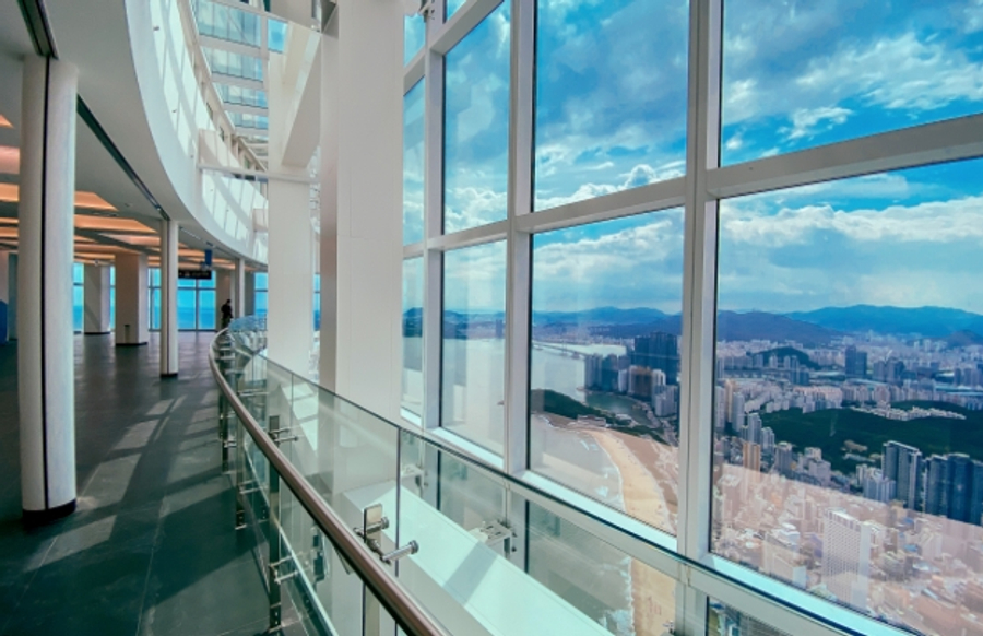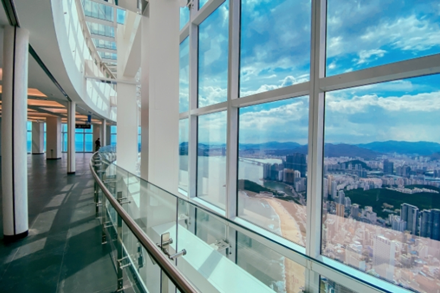 ★眺望海雲台美景,世界上最高星巴克~釜山X THE SKY摩天樓(多媒體高速電梯、360度觀景台)