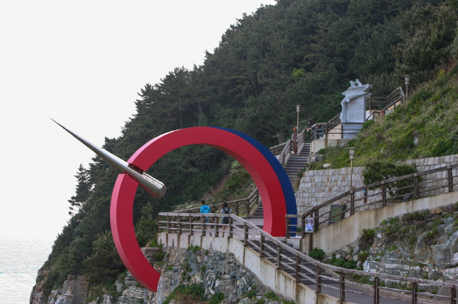 釜山影島太宗台:是釜山市的保護文物,與五六島一起屬於代表釜山的岩石海岸,十分有名。以海拔250公尺的最高峰&#29234;中心,長有松樹等200多種茂密的樹木。天氣晴朗時在瞭望臺上,還可以眺望到遠處的對馬島。