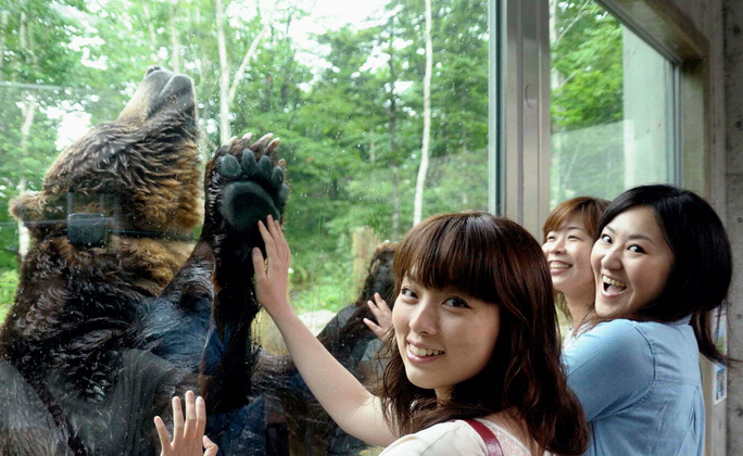 BEAR Mt.與其他動物園及熊牧場不同的地方在於,在面積廣大的森林園區內,熊可以在幾乎野生的環境裡,不受拘束的生活走動。遊客除了可以乘坐在設有安全窗的遊園巴士、漫步在離地5公尺高的遊步道之外,牧場正中央還有可觀覽的透明玻璃室,皆能夠近距離觀察到熊的生態與蹤跡,體驗最自然、最原始的自然饗宴!。日本珍百景之一、自然之神祕之湖—★美瑛青池