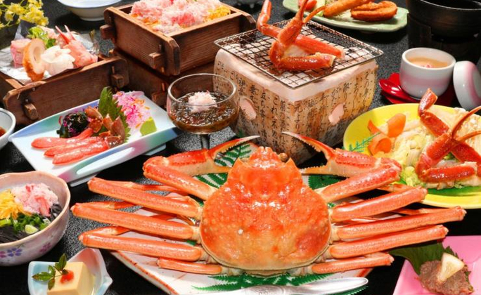 午餐:鳥取當地盛材螃蟹會席(日幣8800元 豐盛螃蟹午餐,全品21道菜,含3隻螃蟹)