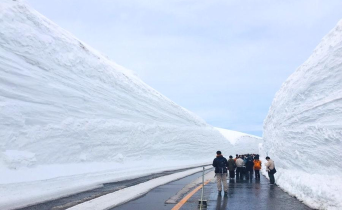 立山黑部阿爾卑斯山脈路線(Alpen Route)於1971年完工,是國際級的山岳觀光線。每年10月之後,立山被冰雪覆蓋,並展開長達半年的封山期。一直到隔年4月初,立山黑部觀光鐵道會利用巨型剷雪車,在雪地中闢出一條車道,兩旁高達20公尺的雪牆,自然與人工結合的磅礡景觀,猶如摩西開海再現,是觀光客驚呼連連的奇景。 每年開山後,在立山天狗平至室堂平間的道路,會舉辦「漫步大雪谷活動」,讓遊客行走雪牆其間,每年都吸引近10萬人慕名而來。趕快來立山黑部感受冬盡春來的暖意,和雪壁的震撼魅力吧!