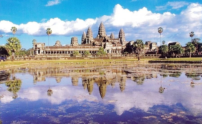 高棉北部的暹粒省,它曾長期淹沒於叢林中,直到19世紀才被發現。吳哥窟總建築群佔地24公里長,寬8公里,是高棉吳哥王朝全盛時期所遺留下來的不朽宗教建築;全城雕刻之精美有『雕刻出來的王城』美譽。