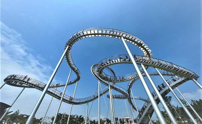 在2021年底落成的新景點浦項市的環湖公園「Space Walk」,由德國藝術家與浦項政府、浦項鋼鐵等聯手製成,建立了333公尺的雲霄飛車步道,外觀看起來就像遊樂設施,但卻是可供行人行走於上的觀景台天空步道,不管從哪個角度看,浦項「Space Walk」以彷彿雲霄飛車般的軌道都給人種震撼感,拍照起來很壯觀,成為浦項的打卡熱點。