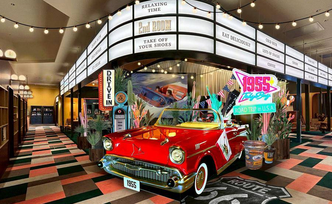 1955 東京灣 by 星野集團 以「1955 年」作為故事起點,那是一個夢想、娛樂與未來想像開始快速擴張的年代。 整體設計融合美國中世紀風格與復古流行文化, 打造宛如走進時光場景般的住宿體驗。
