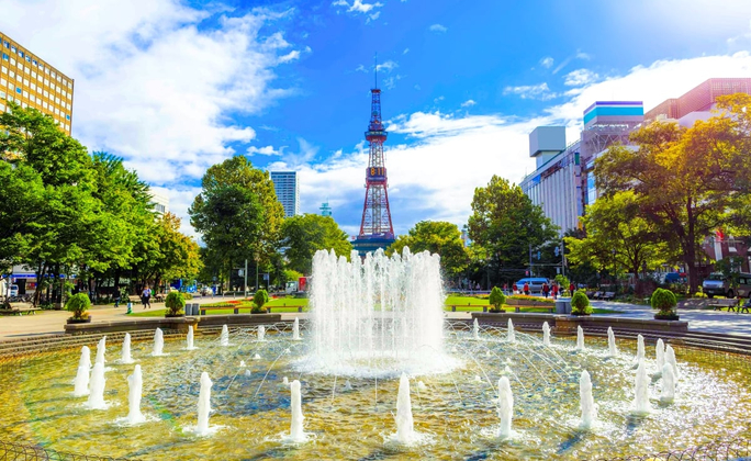 寬一百公尺,長達1.5公里,是將札幌市的中心區,以一條帶狀綠地劃分為南北美麗的街路公園,亦有「大通逍遙地」之稱,也是札幌市區最著名的祭典場地。公園內有一電視塔,高約一百七十四公尺;春天的紫丁香祭、夏天的啤酒花園祭以及冬天白色燈飾節及雪祭,都吸引了各地的觀光客慕名而來。【狸小路】