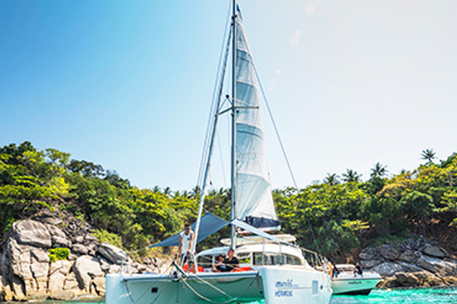 Boutique Resort Pool Access泳池房、Private Pool Villa泳池別墅 或 Ozone Luxury Pool Villas泳池別墅或同級 第 3 天 雙軌帆船派對一日-雙跳島、浮潛&海釣、魅影人妖拍照互動、芒果糯米飯下午茶、啤酒飲料暢飲無限 / 米其林餐盤-泰南咖哩螃蟹 【大型帆船快樂節奏・雙島出航不暈船全攻略・旅拍】 陽光、揚帆、白沙灘,這次完整出現在你的限動上要破表!在普吉島的一天,我竟然一次打卡了二座夢幻離島:皇帝島、珊瑚島,還搭上超浪漫的大型帆船出海浮潛,這才是真正的度假打開方式! 從碼頭啟程,乘著微風首先抵達了皇帝島。這裡的海水清澈如藍寶石,陽光灑在水面上,閃爍著如糖霜般的光澤。或者你可潛入海中,五彩斑斕的珊瑚世界令人目不暇給,小丑魚就在眼前穿梭,彷彿掉入了夢幻的海底童話。 午餐後是最期待的時刻,登上大型帆船前往珊瑚島。帆船行進間輕輕搖晃,海風迎面而來,讓人一秒進入放鬆模式。不想下水也沒關係,光是在甲板上拍照、發呆、享受免費肩頸按摩就已經值回票價。 行程內容超級豐富:SUP立槳、浮潛、海釣、海上滑梯、下午茶時段享用芒果糯米飯、啤酒飲料暢飲,還能與美女人妖拍照互動!最棒的是全程人數不多,就是私人包船般寬敞自在,完全不擁擠、無壓力。 帆船優點一次享盡 ①空間寬敞穩定,航行過程舒適不暈船 ②一次玩轉皇帝島+珊瑚島,雙跳島美拍不漏拍,浮潛天堂不容錯過,不下水也精彩!隨手一拍皆是明信片風景 ③與美女人妖服務人員:精彩華服登場,或留下最具泰味的回憶合照。(實際拍照互動會依現場營運狀況調整,有時可能不開放) ④海上滑梯嗨翻天:從帆船直衝海面,刺激又好玩(依照船型安排) ⑤SUP立槳挑戰平衡感:站在海上感受如畫般的視角 ⑥海釣樂趣無窮:放下魚線,享受當地漁夫的樂趣 ⑦美食與美景雙享:下午茶時間精緻登場:甜香誘人的芒果糯米飯,搭配茶點,療癒味蕾,飲料啤酒暢飲,補足航行能量! 不論你是熱愛水上活動的探險家,或是想在甲板曬太陽、美拍美景的慵懶旅人,大型帆船都能滿足你對海島假期的所有想像!放慢腳步,享受普吉島獨有的快樂航海節奏吧! 【櫥櫃咖哩螃蟹泰南料理|米其林餐盤】坐落於一棟典雅的中華及葡萄牙風格建築,內部裝潢融合復古家居感與雅緻元素,拱門門框、天鵝絨沙發與卷簾窗簾等,空間劃分成幾個不同區域,兼具私密及溫馨感,全球最佳餐廳+1。餐廳外牆醒目的「巨型龍蝦裝飾」也成為地標一景。這家餐廳結合傳統食譜與現代手法,讓人從味覺到視覺都能感受到濃濃的泰國南部魅力。