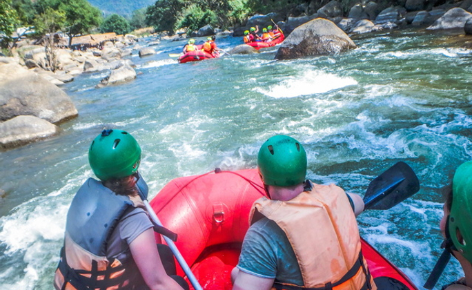 這裡水量充裕、激流點高達30處,驚險刺激,非常適合泛舟,因此這裡成了峇里島熱門的泛舟最佳地點,故抵達烏布烏布區聚落之後隨即前往參加【激流泛舟】的活動,就在峇里島最美的阿漾河畔再徒步至泛舟區泛舟,一路上山巒起伏;有險峻的河谷、梯田及小徑人家;之後穿上船家為您準備的泛舟裝備在湍急的河流上進行一趟泛舟冒險之旅,沿途景色優美層層相疊的梯田和遼遠的椰林,讓您驚嘆不已,直呼過隱。