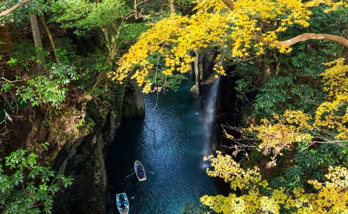 【高千穗峽】在日本的神話裡,宮崎縣高千惠街的深山裡有一處聖地,高度高達80米~100米V字型的溪穀橫跨7千米,是「高千惠峽谷」的一大象徵,同時也被日本瀑布100選選中的「真名井瀑布」。從五瀬河經過高千惠峽谷的斷崖,猶如髮絲般垂直流動的瀑布,是多麼壯觀、具有幻想的風景。【湯布院】湯布院是分佈在大分川的源流之地---由布院盆地中心的鄉鎮,盆地北側有知名的稱爲豐後富士的由布嶽。自古以來,老式旅店與別致的洋式私人旅館、有個性的美術館與小型展覽室、高級酒樓與茶室相處並存,構成一種優雅的氣氛。【金麟湖】由溫泉匯流而成的金鱗湖,即使是嚴冬季節,湖水也熱氣騰騰,是盆地中晨霧的來源。這一帶充滿情趣的風景,深深地迷戀了與謝野晶子和北原白秋等著名人士,是湯布院最著名的湖泊。