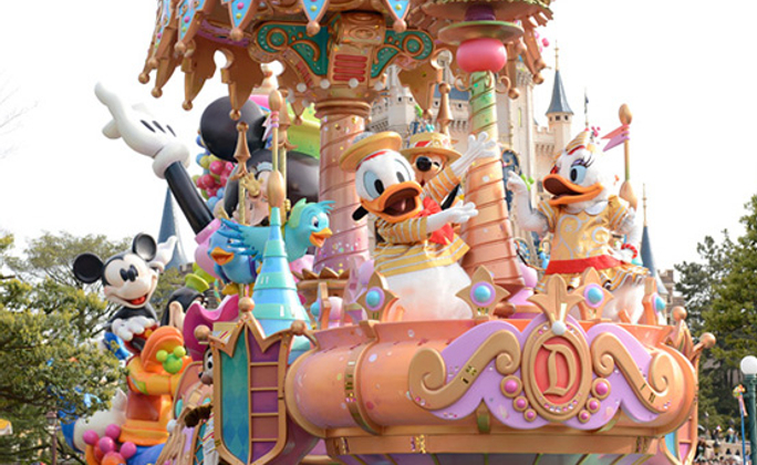 以全新華麗無比的「奇想騰飛」遊行揭開序幕,在城堡世界裡與米奇等迪士尼明星一同度過歡樂國度!