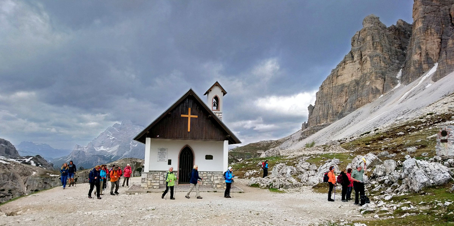 HOTEL WEINEGARTEN 或HOTEL GRUENER BAUM BRESSANONE 或HOTEL CORSO BRUNICO或同級 第 5 天 飯店🚌三尖峰自然公園🚌8km🚌米蘇里納湖🚌161km-威尼斯區 📌三尖峰自然公園Parco Naturale Tre Cime是聯合國教科文組織世界自然遺產的一部分,公園擁有壯闊的石灰岩與白雲岩地貌,景觀雄偉壯麗,四季風情各異。園內生態豐富,棲息著高山羚羊、旱獺、金鵰等野生動物,並盛開雪絨花等高山植物。【小編的話】今日安排Rifugio Auronzo 至 Cappella degli Alpini 的輕健行,是體驗三尖峰壯麗景色最輕鬆的方式之一。全程1小時的健行沿著寬敞的碎石小徑行進,不僅能俯瞰對面的 Cadini 群峰,還能逐步迎來三尖峰的雄偉輪廓。抵達純白的小教堂後,即是著名的觀景點可將三尖峰全景盡收眼底,也是經典拍照取景之地。📌米蘇里納湖Lago di Misurina是貝魯諾省最大的天然高山湖泊被譽為「多洛米蒂的明珠」。湖水清澈如鏡,四周環繞壯麗山峰,包括壯觀的三尖峰與索拉皮斯山群,湖畔景色隨季節變化展現不同風貌。夏季湖面倒映青山藍天,冬季則常結冰化為雪白世界。