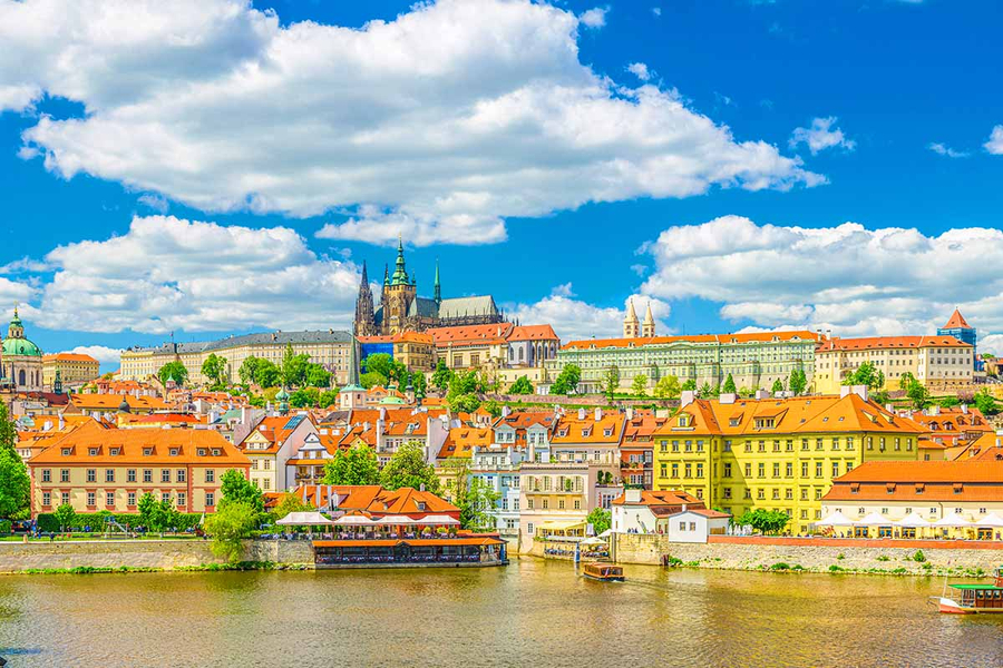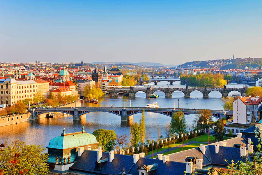 班機抵達後,隨即展開市區觀光:火藥塔:布拉格最早的13座城門之一,修建於1475年,因17世紀時被用來存放火藥而得其名,外觀精美浮雕值得欣賞,查理大橋:布拉格最著名橋樑、世界最驚人哥德式建築之一,橫跨伏爾塔瓦河,連接著布拉格老城區與城堡區。初建於14世紀,因由石頭和石板堆砌而成,早期又被稱作「石橋」,全長516公尺、16個拱門橋墩、30座雕像。眾多雕像中,民族聖人聖約翰雕像,觸摸據說能帶來好運,是遊客打卡聖地。跳舞的房子:1996年完建,前衛設計搶眼且具爭議,造型搖擺又名「酒醉的房子」、「弗萊德與琴吉的房子」。是布拉格極具特色地標,內部有飯店、頂樓觀景台酒吧、餐廳,建築藝術迷必去的布拉格旅遊景點。接著遊覽老城廣場,廣場上豎立著捷克宗教改革家胡斯雕像,廣場周圍圍繞著中世紀美麗建築,有哥德式建築泰恩教堂,也有巴洛克式聖尼古拉教堂,古老的市政廳與非常著名的天文鐘。各大節日慶典大多也都在廣場上舉辦活動與市集,配上街頭藝人表演,令整個廣場熱鬧非凡,因此總是有著非常多遊客駐足於廣場上慢慢品味,感受東歐熱情的魅力。今晚入宿瓦茲拉夫廣場五星旅館,旅館位於捷克近代歷史事件發生的地點,離老城區也在步程之內,兼顧了遊人需要的便捷,以及精緻旅遊的感受,讓布拉格的夜晚更是亮眼、迷人。