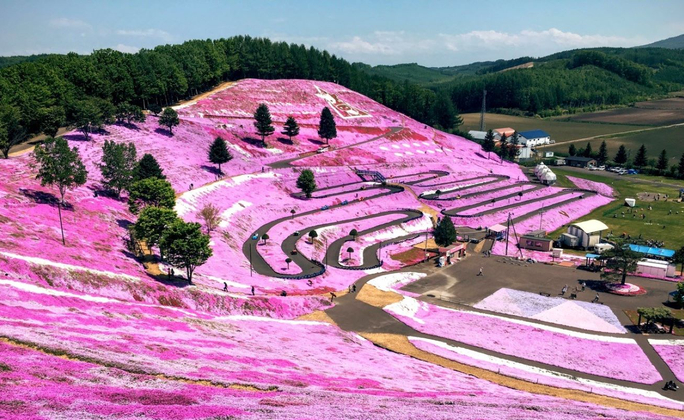北海道大空町的知名景點,每年5月上旬至6月上旬會舉辦「東藻琴芝櫻祭」,以10公頃廣闊山坡上盛開的粉紅、白色及紅色芝櫻聞名,形成如粉紅地毯般的壯麗景觀,園區內有山津見神社、粉紅鳥居等特色地標,是體驗北海道春季花海的必訪之地。