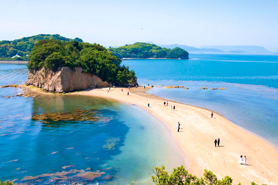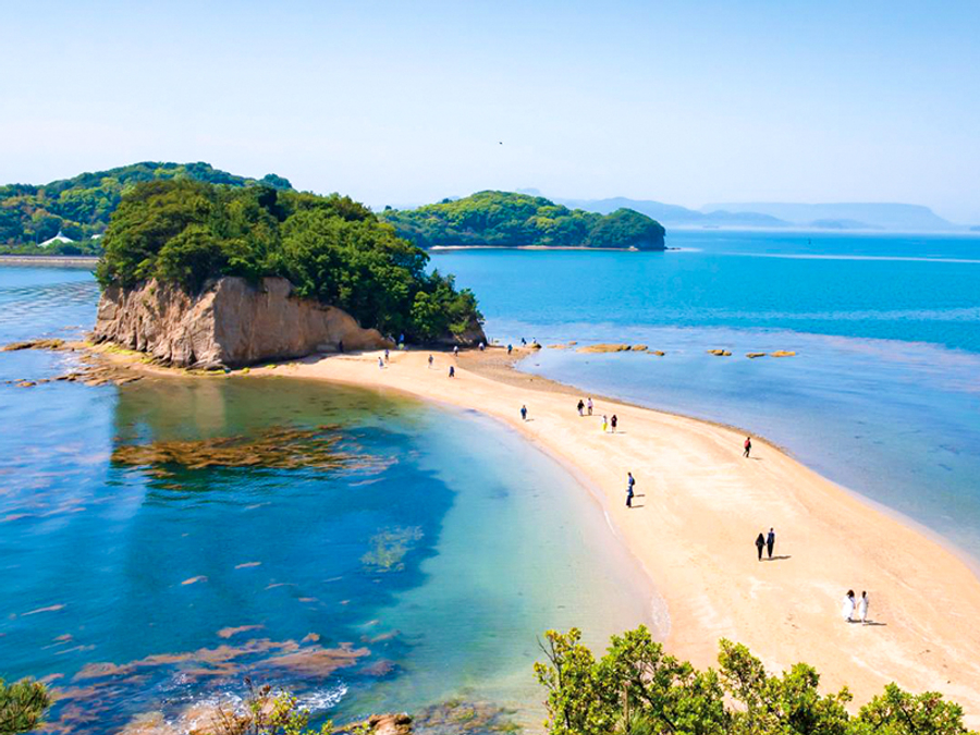「天使的散步道」是個會隨著漲退潮而出現或消失的砂道。從相鄰小豆島的「弁天島」開始,一共連結4個島嶼。能通過天使的散步道的時刻為上午及下午的時間,一天兩次於退潮時露出地面砂道。據說與心愛的人手牽手一起走過此散步道的話,就會有天使降落在兩人之間,並實現您的願望。是全國票選出來最適合求婚的浪漫場所之一,被認定為「戀人的聖地」。