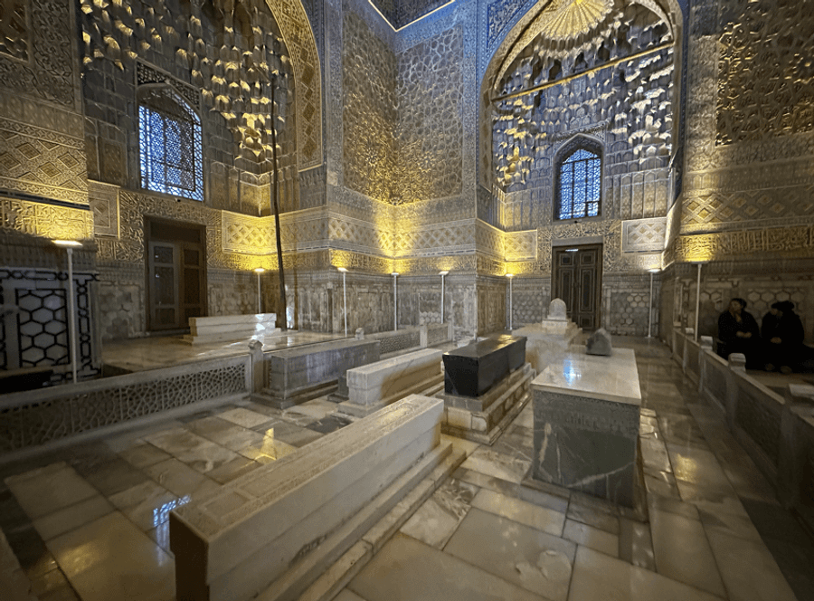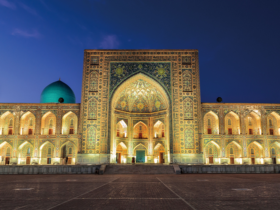 烏茲別克-布哈拉 Paradise Plaza Luxury Hotel (天堂廣場豪華酒店) 或同級或同級 第 13 天 第 13 天 布哈拉→(距約4H) 撒馬爾罕(帖木兒陵寢、SIOB巴劄、雷吉斯坦廣場+雷吉斯廣場燈光秀) 特別安排:製饢DIY+傳統婚禮表演 撒馬爾罕Samarkand|藍色帝國・絲路之心撒馬爾罕 位於烏茲別克斯坦中部,是中亞絲綢之路上最璀璨的古都之一,被譽為「絲路上的藍寶石」 或 「東方的羅馬」。整座城市以壯麗的藍色圓頂與琉璃馬賽克建築聞名,於 2001 年被列入 UNESCO 世界文化遺產。【撒馬爾罕製饢 DIY+傳統婚禮表演】 從一塊麵團開始,走進真正的絲路日常。親手體驗撒馬爾罕傳統「饢餅」製作,揉麵、壓紋、入爐,每個步驟都帶著中亞家庭的生活溫度;剛出爐的饢香氣直接犯規。接著欣賞當地傳統婚禮表演,音樂、舞蹈與服飾輪番上場,熱鬧卻不浮誇,完整呈現中亞對婚姻與祝福的重視。這不只是看表演、做體驗,而是用味道與節奏,理解撒馬爾罕的文化底氣。【帖木兒陵寢】 為一座宏偉陵墓,建於15世紀初。陵墓主體是一個巨大的藍色穹頂,內部裝飾著精美的馬賽克和鍍金圖案。這裡安葬著帖木兒及其後代,包括其孫子烏魯伯格。古爾艾米爾陵墓是帖木兒帝國時期建築的傑出代表,其建築風格影響了後來的莫臥兒王朝陵墓,如印度的泰姬陵。【SIOB 巴劄Siob Bazaar】 位於烏茲別克撒馬爾罕的西歐布巴劄,是當地規模最大、最貼近生活的傳統市集。從新鮮水果、堅果香料、烤餅與肉品,到日用品與手工雜貨一應俱全,人聲鼎沸卻秩序自成。這裡不是為觀光客設計的舞台,而是城市每日運轉的縮影;走進市場,比逛任何博物館都更快理解撒馬爾罕的節奏與味道。想看真正的中亞日常,SIOB 巴劄一定要留時間慢慢逛。【雷吉斯坦廣場Registan Square】 位於撒馬爾罕市中心,是中亞最具代表性的歷史廣場,也是絲綢之路文明的象徵。廣場由三座宏偉的伊斯蘭神學院——烏魯貝克、謝爾多爾與提拉卡里——所環繞,藍色磁磚、金色穹頂與幾何花紋在陽光下熠熠生輝,氣勢震撼卻秩序嚴謹。這裡曾是學術、宗教與商貿的核心,如今成為世界旅人仰望中亞黃金時代的舞台。白天莊嚴壯麗,夜晚打燈後更顯戲劇張力。雷吉斯坦不是「看一下就走」的景點,而是會讓人不自覺停下腳步、多看幾眼的那種歷史現場。【雷吉斯坦廣場燈光秀】 夜幕降臨,三座神學院化身為光影舞台,燈光隨音樂在藍色磁磚與拱門間流動,將撒馬爾罕的學術、宗教與絲路傳奇一一點亮。不是炫技型聲光,而是有節奏、有故事的演出;站在廣場中央,歷史彷彿被重新喚醒。白天震撼,夜晚更上層樓,是雷吉斯坦最不能錯過的時刻。