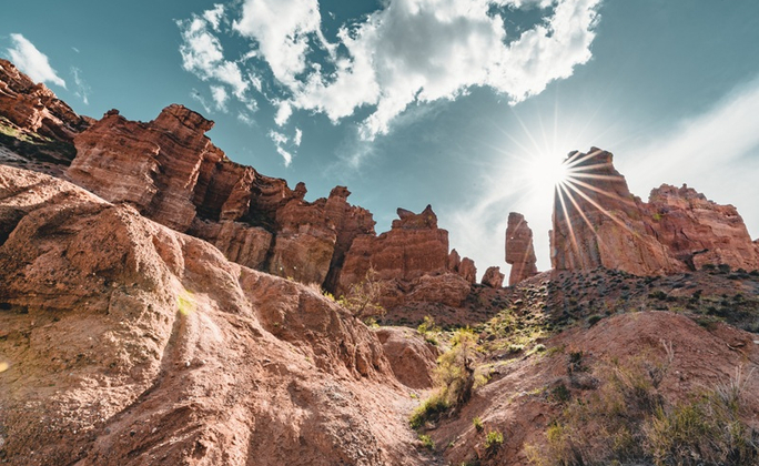 【獨山子大峽谷】 三面環山,氣候宜人,是天山北坡不可多得的自然景觀, 是奎屯河沖出天山後切割獨山子西南方向傾斜平原形成的神奇風光峽谷,峽谷近南北走向,從谷底到谷肩高可達200米。在峽谷上空常有奇雲出現,特別是峽谷南端在別處沒雲時這裡也多是煙霧撩攏,奇雲不斷。有如虎嘯龍吟,有如狼奔豕突,有如雲兔躍谷,有如金字塔生煙。兩岸斷崖多泥塑,疑是大師在雕鑿,獨山子大峽谷最引人注目的是兩岸斷崖上的泥塑,這些造形神態各異的泥塑,近看象佛雕像,遠看似英雄牆,好象是進了一個自然天成的雕塑博物館,陣列著許多世界級的雕塑大師的作品令你目不暇接,令人驚歎。
