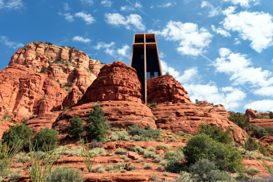 亞利桑那州議會大廈博物館ARIZONA STATE CAPITOL MUSEUM (下車參觀)亞利桑那州議會大廈博物館位於亞利桑那州首府鳳凰城,原為亞利桑那州議會和政府機關的所在地,現已改建為博物館,向公眾開放。 博物館內設有展覽,呈現亞利桑那州的建州歷史、地理環境、重要人物和事件等,讓遊客了解亞利桑那州的發展歷程。註:博物館僅周一至周五開放,如遇國定假日或周末非開放日,則僅能下車參觀外觀 鐘岩BELL ROCK (下車參觀)鐘岩(Bell Rock)是美國亞利桑那州塞多納(Sedona)最具代表性的紅岩地標之一,因外型酷似一口倒扣的巨鐘而得名。它位於179號公路旁,進入Sedona時首先映入眼簾,壯麗又震撼。鐘岩擁有多條步道,適合不同程度的健行者,無論是平緩的散步路線,還是挑戰性的岩石攀登皆可選擇。此外,鐘岩更被視為當地四大能量漩渦之一,許多人前來冥想、打坐,感受獨特磁場能量。夕陽映照下的紅岩景色尤其迷人,是攝影與靜心的絕佳聖地。鐘岩不僅是一處自然奇觀,更是一段身心靈旅程的起點。 聖十字教堂 CHAPEL OF THE HOLY CROSS (路過參觀)聖十字教堂為聖多娜最知名的地標之一。坐落在聖多娜赤色岩石陣之中,聖十字教堂彷彿與其環境融為一體。 亞利桑那州議會大廈博物館鐘岩聖十字教堂