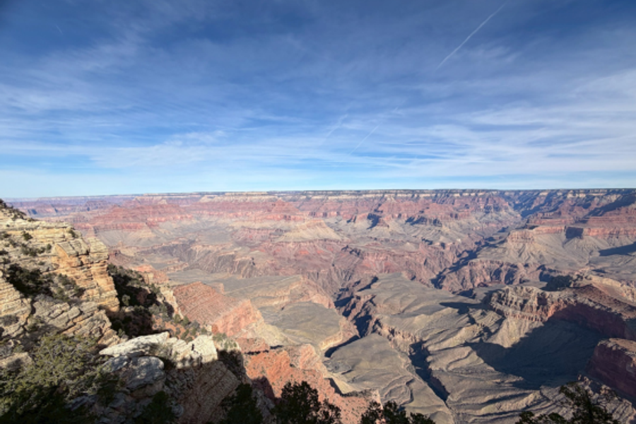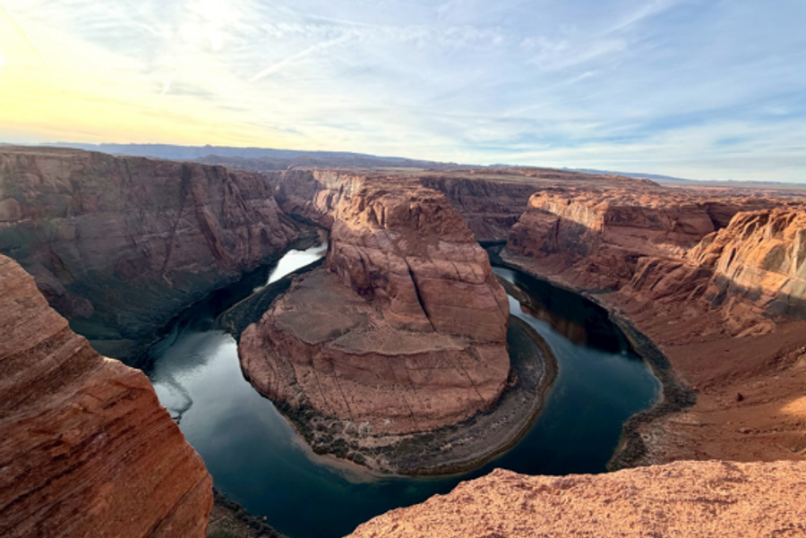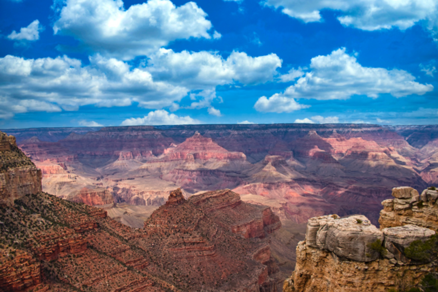 大峽谷國家公園 GRAND CANYON NATIONAL PARK (下車參觀) 世界七大奇景之一的大峽谷由科羅拉多河流經並切割亞利桑那州,所形成1476英尺深的溪谷景觀,大峽谷山石多為橘紅色,從谷底至頂部分佈各時期的岩層,層次清晰可見,並且含有各地質年代的生物化石,彷彿是一處大自然的地理教室,1979年被列入聯合國教科文組織的世界遺產行列。大峽谷全區長度約277英哩,深度達1英里,形成的主因是蜿蜒曲折的科羅拉多河向下切割,鏤刻出令人嘆為觀止的世界奇景!大峽谷兩岸都是橘紅色的巨岩斷層,經過三億年的自然風化,地震,河流的衝擊和切割,大自然利用鬼斧神工的創造力鐫刻得岩層嶙峋,夾著一條深不見底的巨谷,更顯的無比壯麗。神奇的是,一天之內,隨著太陽光線的強弱,峽谷岩石色彩轉換不同顏色,時而深藍色、時而棕灰色、時而又是赤橘色,不禁令人讚嘆大自然造物力量,真是太神奇了呀!註:建議您今天可以自費參加大峽谷直昇機體驗,從直昇機由上往下俯瞰,您能更親近大峽谷看到五彩斑斕的峽谷以及清晰的峽谷岩壁紋理,乘坐直升機更能深刻的體會到大自然的奧妙,若您沒有乘坐過直升機,您更不能錯過高空一賞大峽谷的機會。大峽谷國家公園 大峽谷國家公園