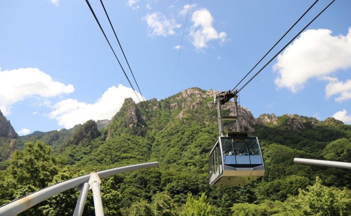 【雪嶽纜車】輕鬆欣賞雪嶽山秘境的最佳方法即是搭乘雪嶽山纜車,纜車搭乘處位於雪嶽山國立公園小公園內,只要10分鐘就能抵達海拔700公尺高的權金城。搭乘纜車移動途中可透過玻璃窗欣賞蔚山岩與萬物相等著名景觀,抵達權金城後,雪嶽山的巍峨山勢便如全景圖般在眼前展開。 從權金城頂端眺望的雪嶽山盡是奇岩怪石,雄偉又神祕,同時還能眺望外雪嶽全景。