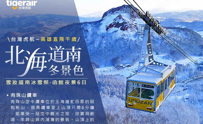 【EZ北海道】道南冬景色~雪妝道南冰雪祭·函館·札幌6日(高雄出發/台灣虎航)