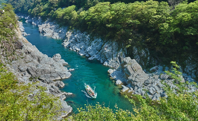 在搭乘遊船的 30 分鐘航程中,可以欣賞德島大步危峽谷的壯麗風光。大步危峽谷四季都有美麗的風景,冬天有白雪皚皚的山頭,春天有點綴着山坡的櫻花,夏天是一片清新的嫩綠樹葉,到了秋天則有色彩斑爛的樹葉。甚至有可能會看見野生動物,例如鷙鳥、野鹿、猴子。