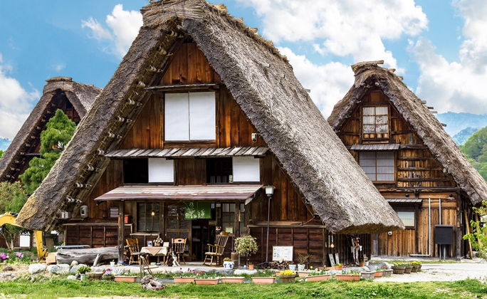 名列世界文化遺產,因為深山圍繞,古人累積的智慧,當地人使用稻草蘆葦合掌形的方式來建築屋頂,加上厚實的中央屋柱,可使嚴冬多雪下,嚴苛的自然環境裡,維持安全。而合掌造這種傳統冬暖夏涼的建屋方式,後來因德國建築學家一本”日本美的再發現”內的介紹而廣為世人所知;聯合國教文組織並特別把白川鄉的荻町合掌集落,鄰近的神山地區等,登錄為世界文化遺產。當您漫步於此時,就彷彿置身於童話世界中的薑餅屋街道。合掌屋是日本最著名的傳統建築之一,古樸的造形,對外國人而言有如童話中的薑餅屋,對日本人而言,則是日本人對抗大自然的精神象徵。保留一百多間合掌屋的【白川鄉荻町】,就像一座露天博物館,是連日本人都十分喜歡的一個觀光地點,您當然也不能錯過。