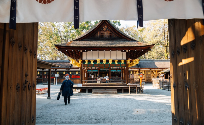 又名賀茂御祖神社,與上賀茂神社同時被視為京都都城的保護神。約有兩千多年歷史,是平安時期以前日本最古老神社之一,名列世界文化遺產。身為日本全國1186座賀茂神社的總本社,神社內含包含了非常多的小神社。主祭神為賀茂建角身命、玉依姬命 (祂的女兒),是知名祈求良緣神社。