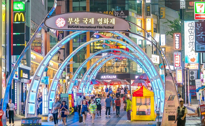 釜山明洞之稱~西面,最大也最熱鬧的購物區,西面1號街是指從舊天佑莊至LG服務中心之間的一條寬8m、長330m的街道,位於釜山市釜山鎮區,是西面繁華的街道,以藝術街聞名。以西面1號街大型標誌為中心,四周聚集了許多酒吧和咖啡館。燈光絢爛的酒吧、美食街,總是充滿快樂、熱鬧的氛圍。