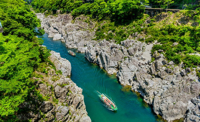 在搭乘遊船的 30 分鐘航程中,可以欣賞德島大步危峽谷的壯麗風光。大步危峽谷四季都有美麗的風景,冬天有白雪皚皚的山頭,春天有點綴着山坡的櫻花,夏天是一片清新的嫩綠樹葉,到了秋天則有色彩斑爛的樹葉。甚至有可能會看見野生動物,例如鷙鳥、野鹿、猴子。