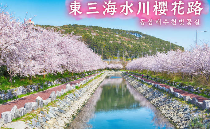【賞櫻秘境~東萊溫泉川櫻花大道+溫泉川咖啡街】釜山東萊溫泉川櫻花大道是沿著溫泉川兩岸綿延數公里的賞櫻景點,以其粉白櫻花隧道和清澈水面倒影聞名,每年春季盛開時景色極美。