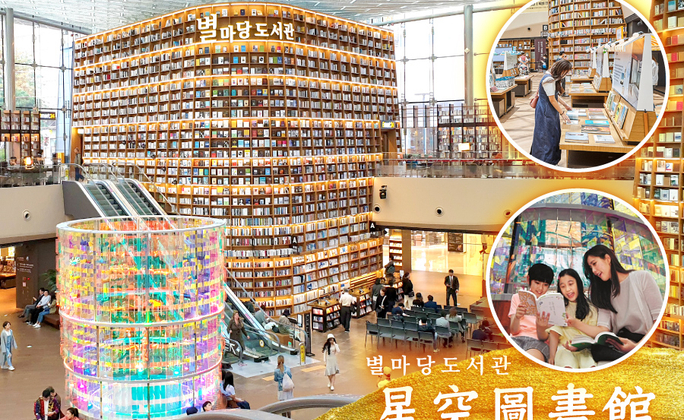 【COEX星空圖書館+亞洲最大地下購物中心~COEX Mall綜合購物中心】韓國首爾最美的圖書館-星空圖書館 STARFIELD LIBRARY,在首爾江南區,由COEX MALL百貨商場設立。挑高空間搭配二、三層樓高的發光書架,閃閃發亮就如同名字般,像那星星般閃耀迷人。星空圖書館完全免費,可在此讀書、用電腦或是參觀,所以吸引很多人前來拍照打卡在IG上。