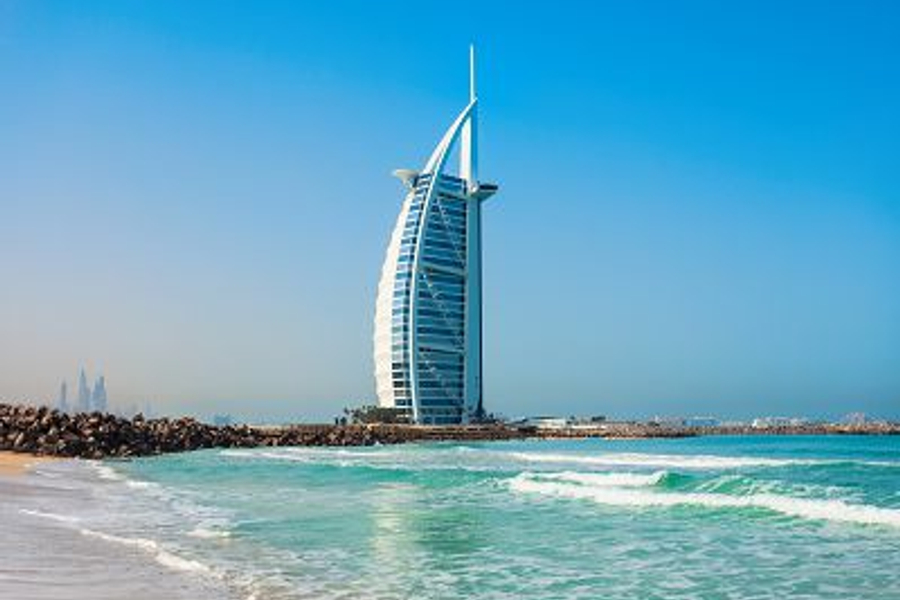 搭乘單程輕軌電車體驗中東地區第一條通車的單軌鐵路,在OPEN BEACH沙灘與知名帆船酒店合影留下回憶,最後到古城市集探索杜拜手工藝品。