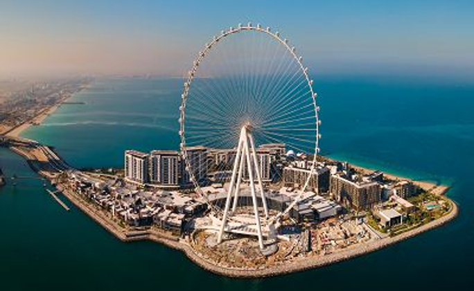 杜拜有名的網紅人工島,島上最有名的就是杜拜新地標巨大摩天輪「杜拜眼Ain Dubai」,杜拜眼高達250米,是世界最高的摩天輪。在藍水島,有迷人的景色圍繞,阿拉伯灣、杜拜碼頭、杜拜眼和杜拜海岸線的美景,親身體驗到全新的都市海濱生活。