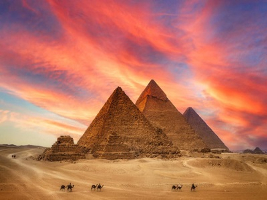 【曠野初曦First light in Wilderness】 沙漠清晨的獨特之美。當第一縷曙光穿透天際,無垠的沙漠從黑夜的寂靜中甦醒過來。遠處的沙丘被金色的陽光慢慢點亮,空氣中瀰漫著一種清新的微涼。風輕輕拂過,帶著沙粒的細語,彷彿在訴說沙漠深處的故事。這樣的景象既寧靜又壯麗,讓人心生敬畏,感受到天地間的浩瀚與永恆。 ★【世界七大奇景金字塔A Wonder of the Ancient World--Pyramids】--(視覺盛宴) 吉薩金字塔群是指一片埃及吉薩的陵墓群,於1979年登入聯合國教科文組織世界遺產,於2007年7月7日獲選為世界新七大奇蹟中的榮譽奇蹟。陵墓群建於埃及第四王朝,主要由三個金字塔組成,而當中最大的是古夫金字塔(又稱「大金字塔」),古夫金字塔是三者中最高也是最古老的金字塔,埋葬的是埃及第四王朝時期的法老古夫。同時也是古代世界七大奇蹟中最古老及唯一尚存的建築物,現在旁邊還設立了太陽船博物館;次大的是卡夫拉金字塔;最小的是曼卡拉金字塔。此外,在這三個主要金字塔旁有著名的獅身人面像和3座屬於皇后的小型金字塔。吉薩金字塔群是聯合國教科文組織世界遺產孟菲斯及其墓地金字塔的一部分。阿拉伯人有一句俗語:「人怕時間,時間怕金字塔」,親眼見證連光陰洪流也臣服的古建築藝術。(安排入內其中一座★金字塔參觀。) ★【金字塔旁騎駱駝/或馬車體驗】(2選1) 在壯麗的金字塔旁,展開一段獨特的20分鐘駱駝騎行之旅。這次冒險將帶您穿越沙漠,感受古埃及的神秘與宏偉,享受難忘的駱駝騎行體驗,並欣賞金字塔壯麗的景色。 (現場如因馬車數量不足,將改為騎駱駝體驗,無法另行退費,敬請見諒)