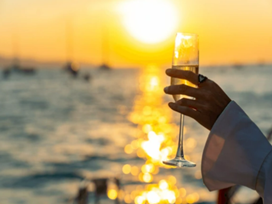 遊艇上備有DJ,現場帶動氣氛,讓你HI不停...上船後,您可選擇最佳位置放妥個人物品後, 沐浴在夕陽的餘暉中,天空變成美麗的橙色、紫色和紅色。