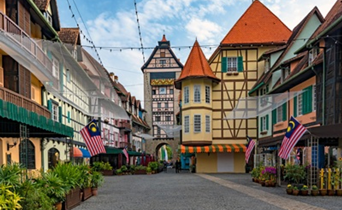 【法國村科瑪小鎮】法國村是仿照法國科爾馬(Colmar)小鎮的街景而建,不過,與科爾馬有別的是,馬來西亞的這個法國主題村鎮,圍繞在自然的山林之中,加上高居2600英尺的山頭,清新的空氣和怡人的氣候,讓人心曠神怡。