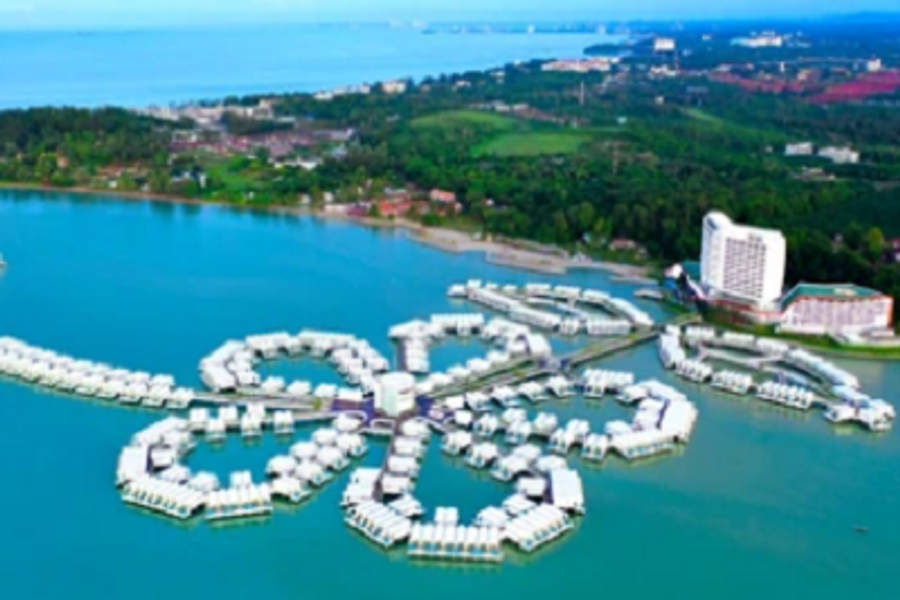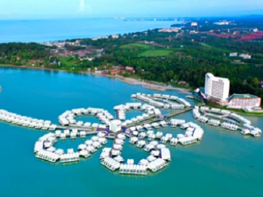 「大紅花海上度假村」共有117間空中別墅和552棟海上別墅,以坐落在波德申海灣的花蕊形狀海上屋迅速竄紅,搭飛機前往吉隆坡機場時,就有機會從空中就會俯瞰到大紅花全景。