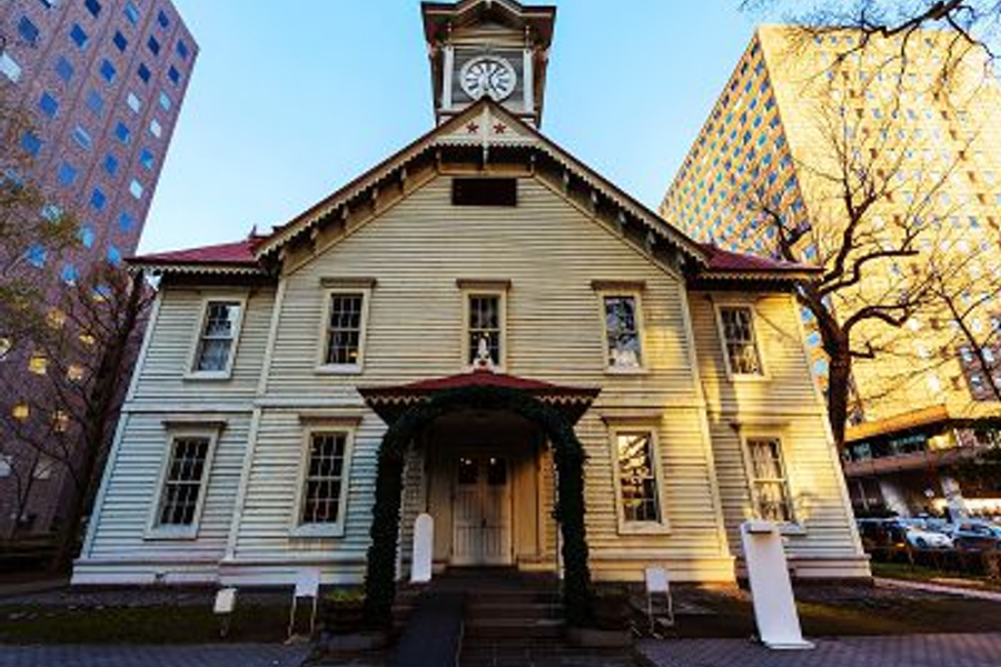 【時計台】札幌的象徵符號之一「時計台」,是西元1878年舊札幌農校的演武場,是樓高兩層的木造西式洋館,塔上的時鐘是美國製造的,至今還能聽到響亮的鐘聲:其內部為札幌「歷史館」,展示有關札幌市的歷史資料。