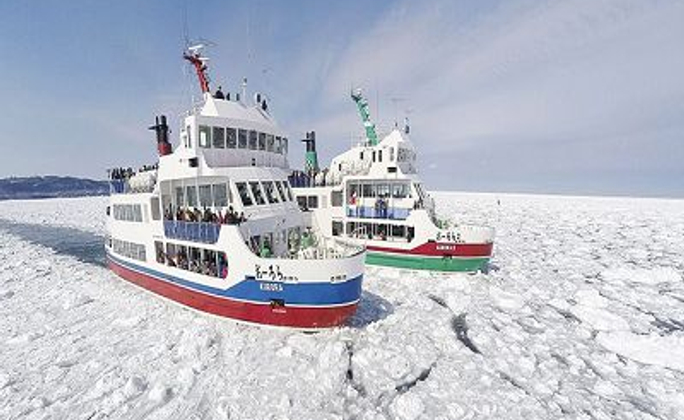【破冰船】每年約1月中旬至3月下旬開航,巡航於被冰所覆蓋著的鄂霍次克海上。無懼於厚達1m的冰層,巡洋船將層層的冰打碎後前進,氣勢十足。如果站在甲板上更是充滿臨場感。在全世界最南端的流冰世界裡,也許您可以看到在流冰上進行日光浴的海豹,或是遇到振翅高飛的白尾鷲或大鷲等。建議您不妨帶著望眼鏡前來觀賞。