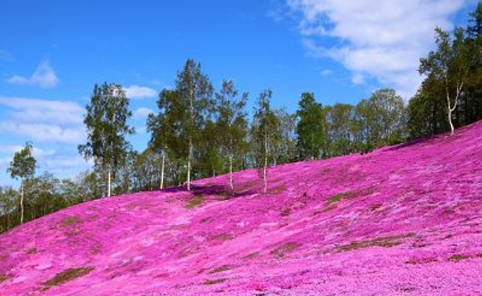 【三島芝櫻公園】位於北海道倶知安町,是春季限定的人氣賞花景點。每年5月下旬至6月,大片芝櫻盛開,粉紅、紫紅與白色花毯鋪滿園區,與背景雄偉的羊蹄山相互輝映,景色十分壯觀。園內步道完善,適合悠閒漫步與拍照。由於芝櫻花期短暫,最佳觀賞時期吸引大量遊客前來,是北海道初夏不可錯過的自然美景。