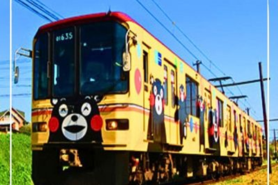 【萌熊電車Kumamon】以『萌熊』為主題的彩繪列車,2016年6月全新彩繪,行程特別安排從到搭乘可愛的『萌熊彩繪電車』,親身感受熊本的超人氣卡哇伊明星『萌熊』的超迷人魅力。在北熊本車站內備有熊本電鐵限定商品及萌熊商品,可在此歡樂選購。